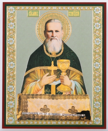 Икона на деревянном планшете 11х13 двойное тиснение Иоанн Кронштадтский