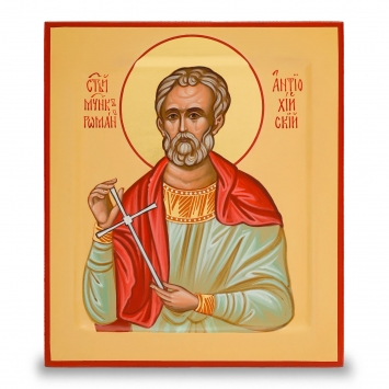 Икона живописная на доске 13х15 масло, золоченый нимб Роман