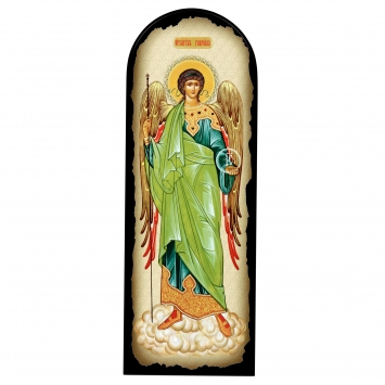 Икона на МДФ 18х50 арочная, объёмная печать, лак Гавриил Архангел 5