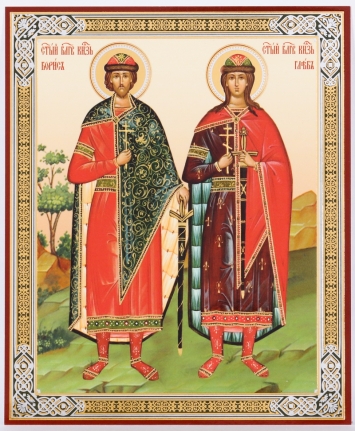 Икона на деревянном планшете 11х13 двойное тиснение Борис и Глеб 5