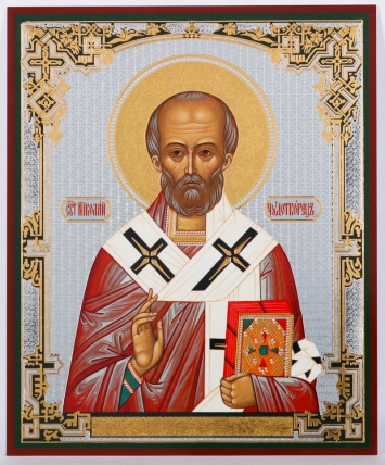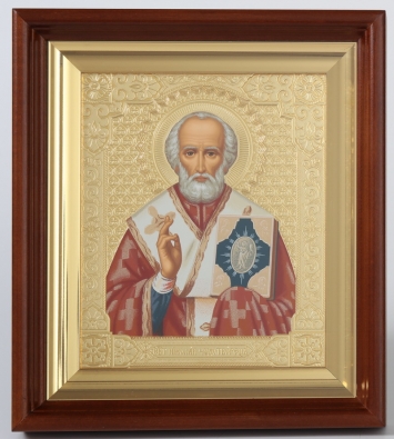Икона в деревянной рамке №1 30х40 двойное тиснение, упаковка Николай Чудотворец 14
