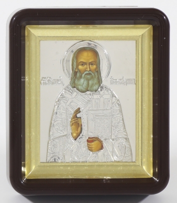 Икона в пластмассовой рамке 11х13 тиснение Сергий Радонежский