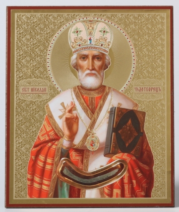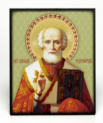 Икона на доске 13х15 объёмная печать, лак Николай Чудотворец 10