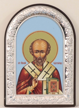 Икона на оргалите №1 11х13 двойное тиснение Николай Чудотворец 19