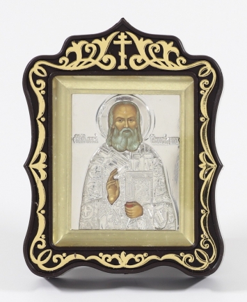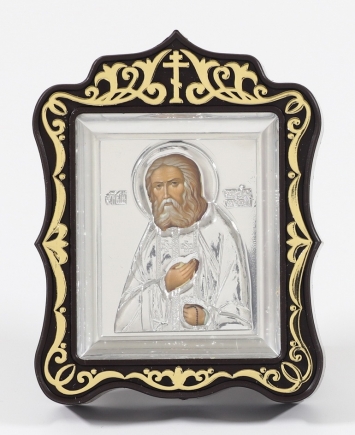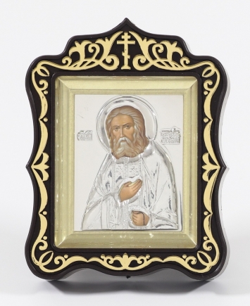 Икона в пластмассовой рамке Киот 6х7 резной металлизированный Серафим Саровский