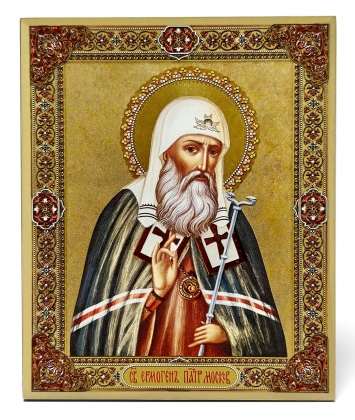 Икона на доске 18х24 золоченое покрытие, объёмная печать, лак Ермоген Патриарх Московский,