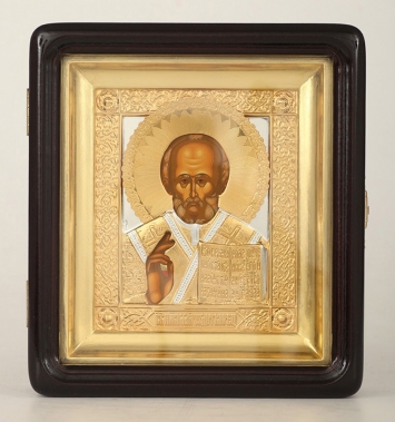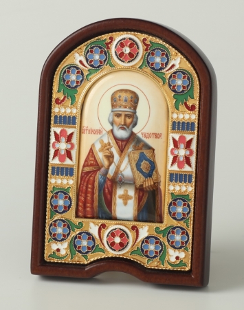Икона именная №2 гальванопластика, эмаль, финифть, в деревянной рамке / золочение / Николай Чудотворец