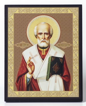 Икона на доске 13х15 объёмная печать, лак Николай Чудотворец 9