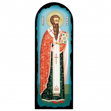 Икона на МДФ 18х50 арочная, объёмная печать, лак Василий Великий 2