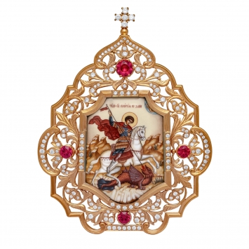 Икона настольная №152 / Фианиты серебро деколь / золочение / Чудо Георгия о змие (УИН)