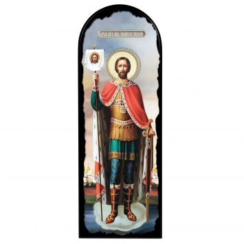 Икона на МДФ 18х50 арочная, объёмная печать, лак Александр Невский 2