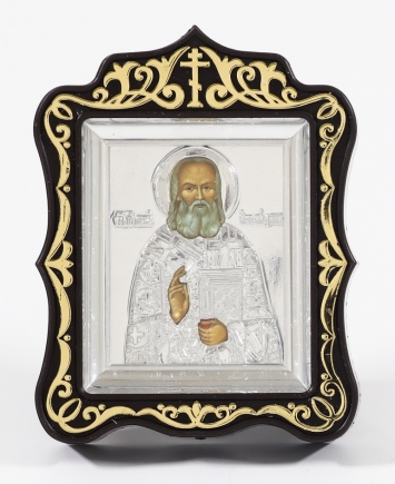 Икона в пластмассовой рамке 6х7 металлизированная риза Сергий Радонежский (ростовой)
