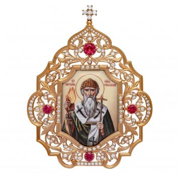 Икона настольная №152 / Фианиты серебро деколь / золочение / Спиридон Тримифунтский (УИН)
