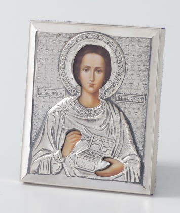 Икона штампованная 6*7 / фото / серебро Пантелеимон (УИН)