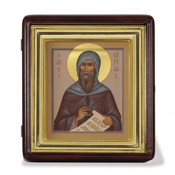 Икона живописная на доске в киоте 18х24 темпера, золоченый нимб, ковчег, киот №1 Кирилл