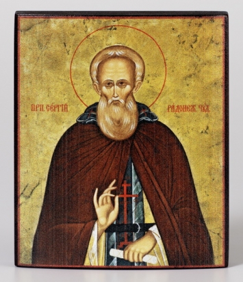 Икона на доске 18х24 золоченое покрытие, объёмная печать, лак Сергий Радонежский 2