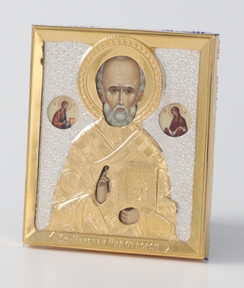 Икона живописная в гальванопластической ризе 24*30 / киот / Николай Чудотворец 2