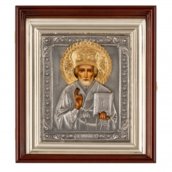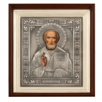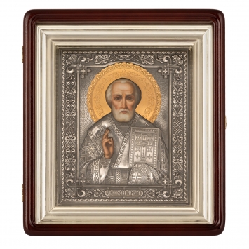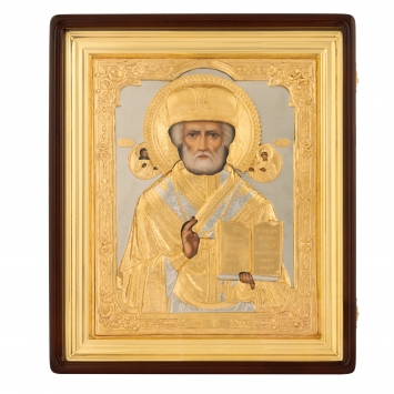 Икона живописная в киоте 24х30 масло, риза №305, черненое серебрение, киот №1 Николай Чудотворец
