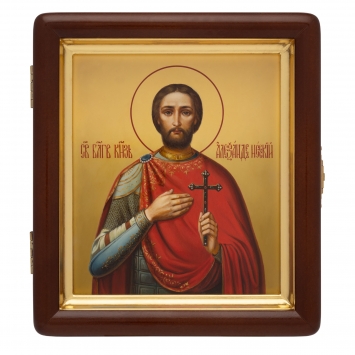 Икона живописная на доске в киоте 13х15 масло, киот №1 Александр Невский, 00712