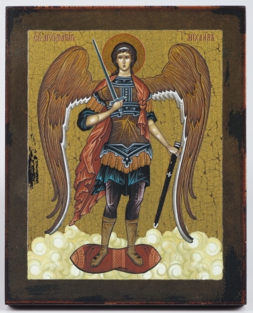 Икона на дереве 13х16 лак №2 Архангел Михаил (ростовой)