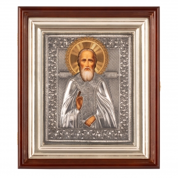 Икона живописная в киоте 18х24 масло, риза №280, черненое серебрение, киот №1 Сергий Радонежский