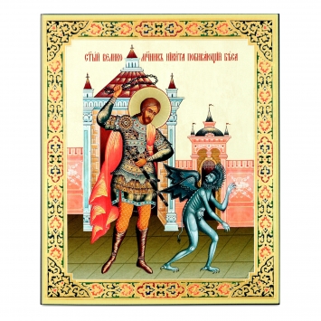 Икона на доске 33х40 объемная печать, лак Никита, бесогон