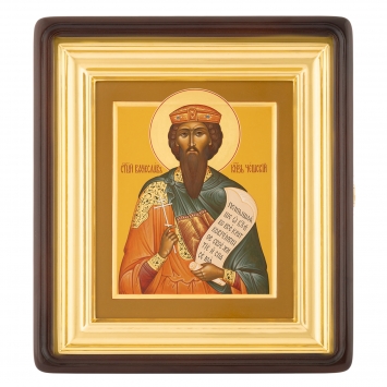 Икона живописная на доске в киоте 18х24 темпера, золоченый нимб, ковчег, киот №1 Вячеслав Чешский, 02902