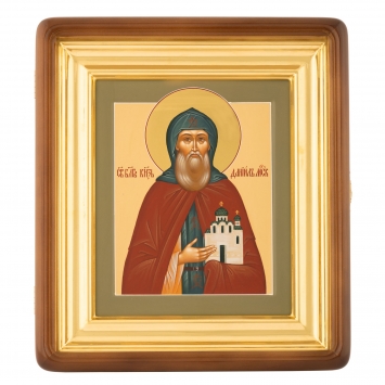 Икона живописная на доске в киоте 18х24 темпера, золоченый нимб, ковчег, киот №1 Даниил Московский, 00800