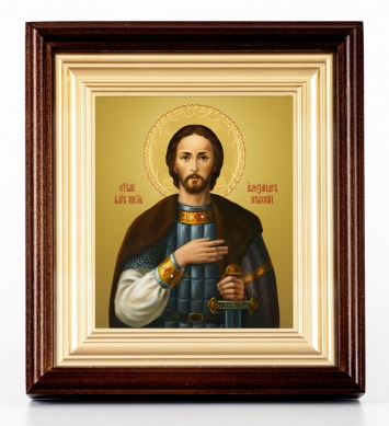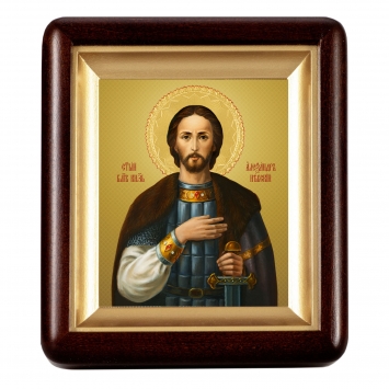 Икона в деревянной рамке №1 11х13 изображение на пластике Александр Невский (поясной)