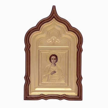 Икона фото в киоте 11х13 риза, киот №24 Пантелеимон