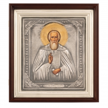 Икона живописная в киоте 24х30 масло, риза №191, черненое серебрение, киот №1 Сергий Радонежский