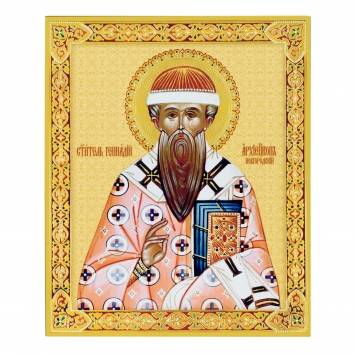 Икона на доске 33х40 объемная печать, лак Геннадий Новгородский