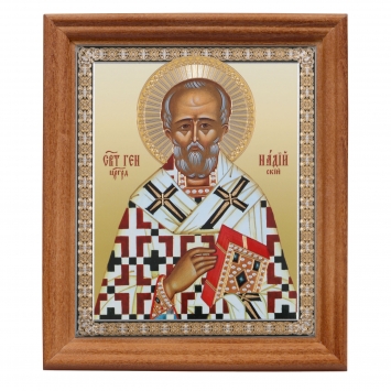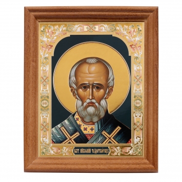Икона в деревянной рамке №3 11х13 двойное тиснение Николай Чудотворец 2