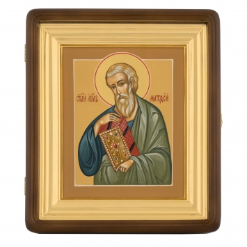 Икона живописная на доске в киоте 18х24 темпера, золоченый нимб, ковчег, киот №1 Апостол Матфей, 01124