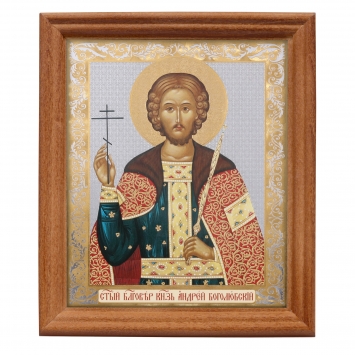 Икона в деревянной рамке №3 11х13 двойное тиснение Андрей Боголюбский