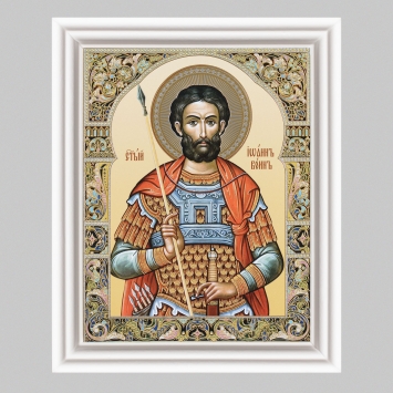 Икона в деревянной рамке №3 11х13 (белая) двойное тиснение Иоанн Воин 4
