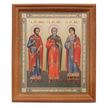 Икона в деревянной рамке №3 11х13 двойное тиснение Гурий, Самон, Авив 3