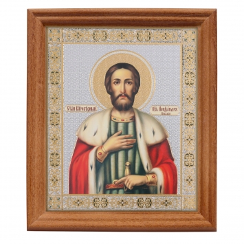 Икона в деревянной рамке №3 11х13 двойное тиснение Вячеслав Чешский 3