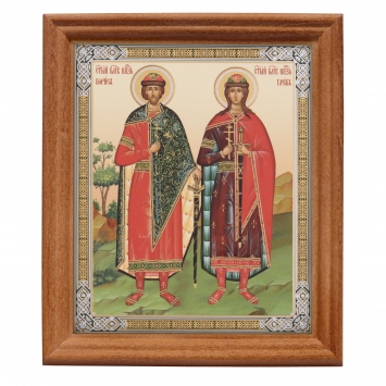 Икона в деревянной рамке №3 11х13 двойное тиснение Борис и Глеб 5