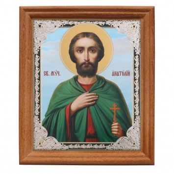 Икона в деревянной рамке №3 11х13 двойное тиснение Анатолий 2