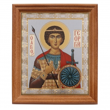 Икона в деревянной рамке №3 11х13 двойное тиснение Георгий Победоносец 2