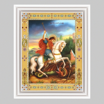 Икона в деревянной рамке №3 11х13 (белая) двойное тиснение Чудо Георгия о змие 8