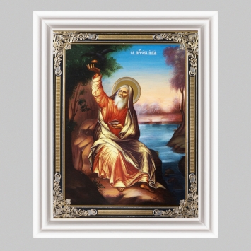 Икона в деревянной рамке №3 11х13 (белая) двойное тиснение Илия Пророк 5