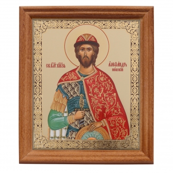 Икона в деревянной рамке №3 11х13 двойное тиснение Александр Невский 3