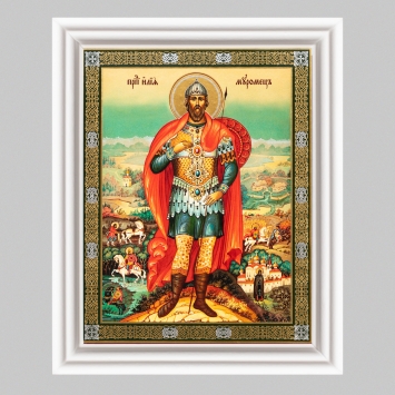 Икона в деревянной рамке №3 11х13 (белая) двойное тиснение Александр Невский 4