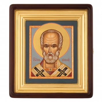Икона живописная на доске в киоте 18х24 темпера, золоченый нимб, ковчег, киот №1 Николай Чудотворец, 02839