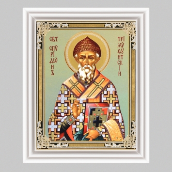 Икона в деревянной рамке №3 11х13 (белая) двойное тиснение Спиридон Тримифунтский 8