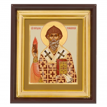 Икона живописная на доске в киоте 24х30 темпера, золоченый нимб, ковчег, киот №1 Спиридон Тримифунтский, 05262