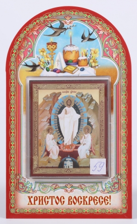 Икона в жесткой ламинации 8х11 с оборотом, тиснение, высечка, частица земли Воскресение Христово 39