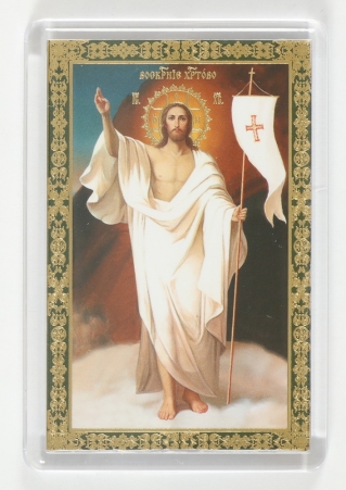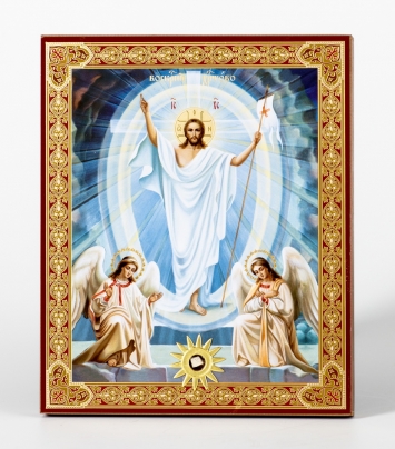 Икона в жесткой ламинации 8х11 с оборотом, тиснение, высечка, частица земли Воскресение Христово 28